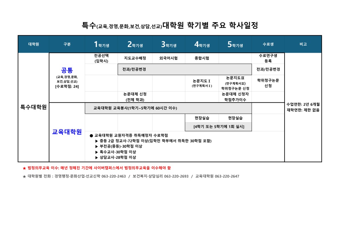 6 [2] 과정 · 학기별 학사일정 안내 관리자 23-05-08 1380   학기별_주요_학사일정-특수대학원.jpg