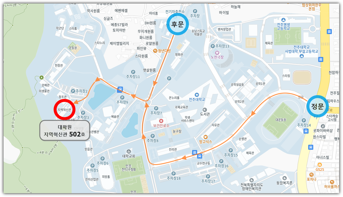 주소: (55069) 전북특별자치도 전주시 완산구 천잠로 303 전주대학교 지역혁신관 502호