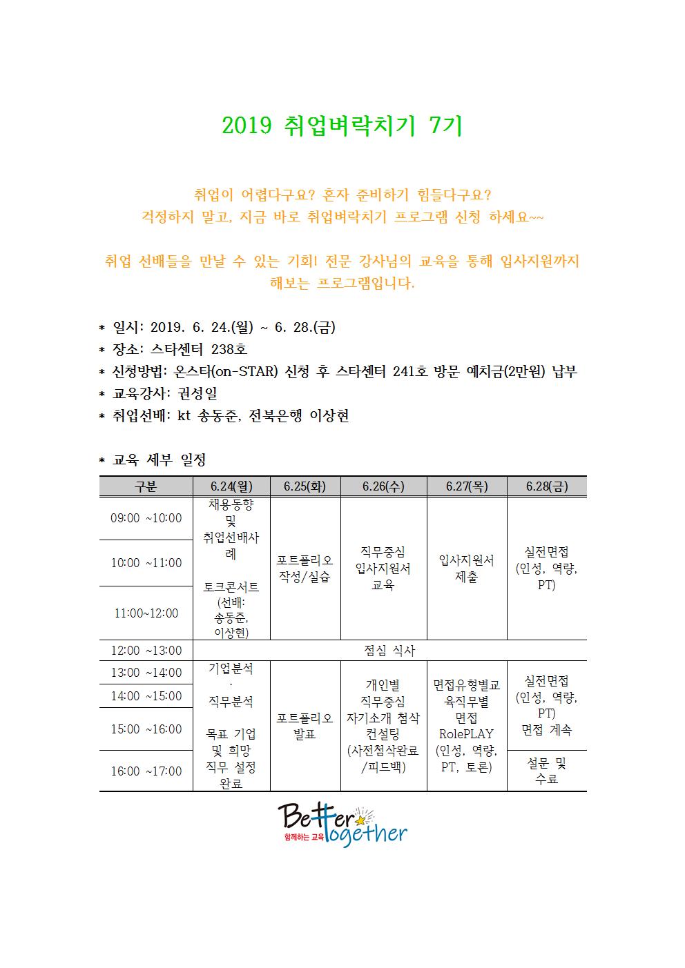 | 60 | 2019 취업벼락치기 모집 | 대학일자리센터 | 19-06-03 | 1439 |