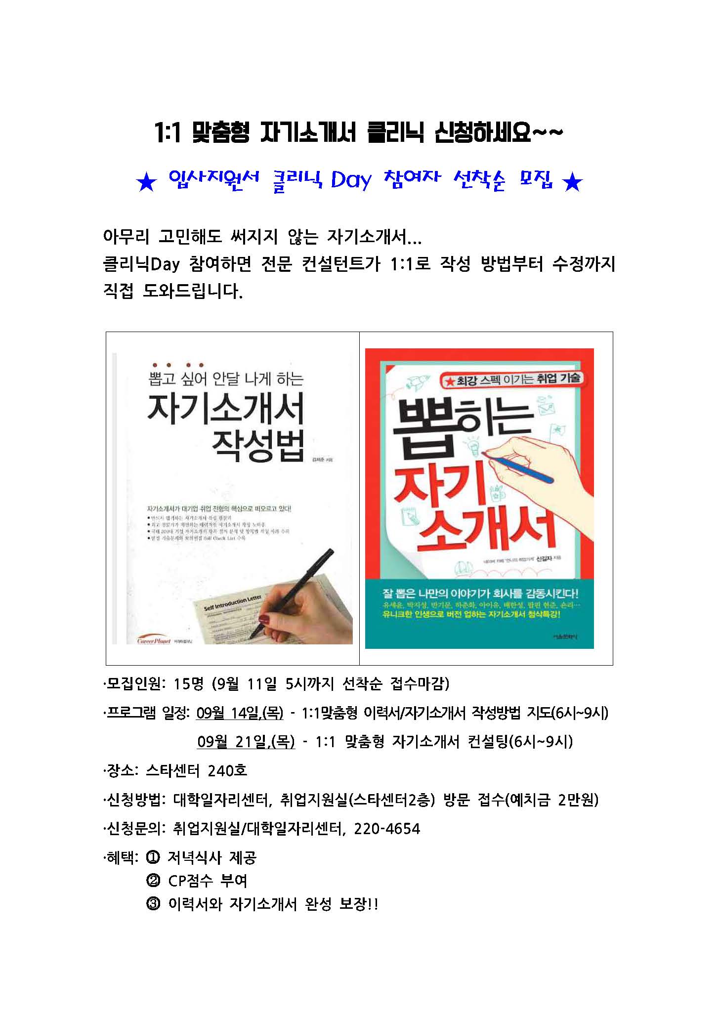 ★ 입사지원서 클리닉Day ~ 서둘러 신청하세요 ★ [마감] -