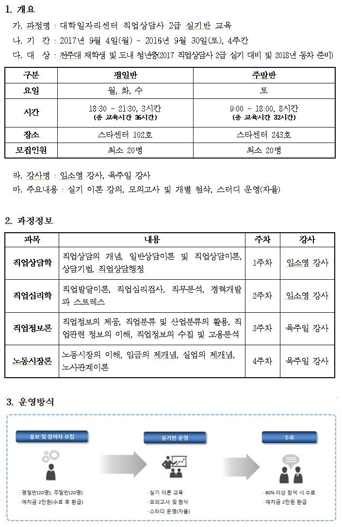 2017 대학일자리센터 직업상담사 2급 실기반 교육(주말반, 평일반)